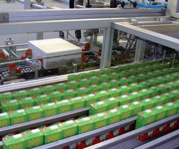 該機(jī)型廣泛應(yīng)用于飲料、乳品和食品行業(yè),全自動(dòng)化二次包裝瓶裝和聽(tīng)裝產(chǎn)品,大幅提高生產(chǎn)效率及節(jié)約包裝成本。